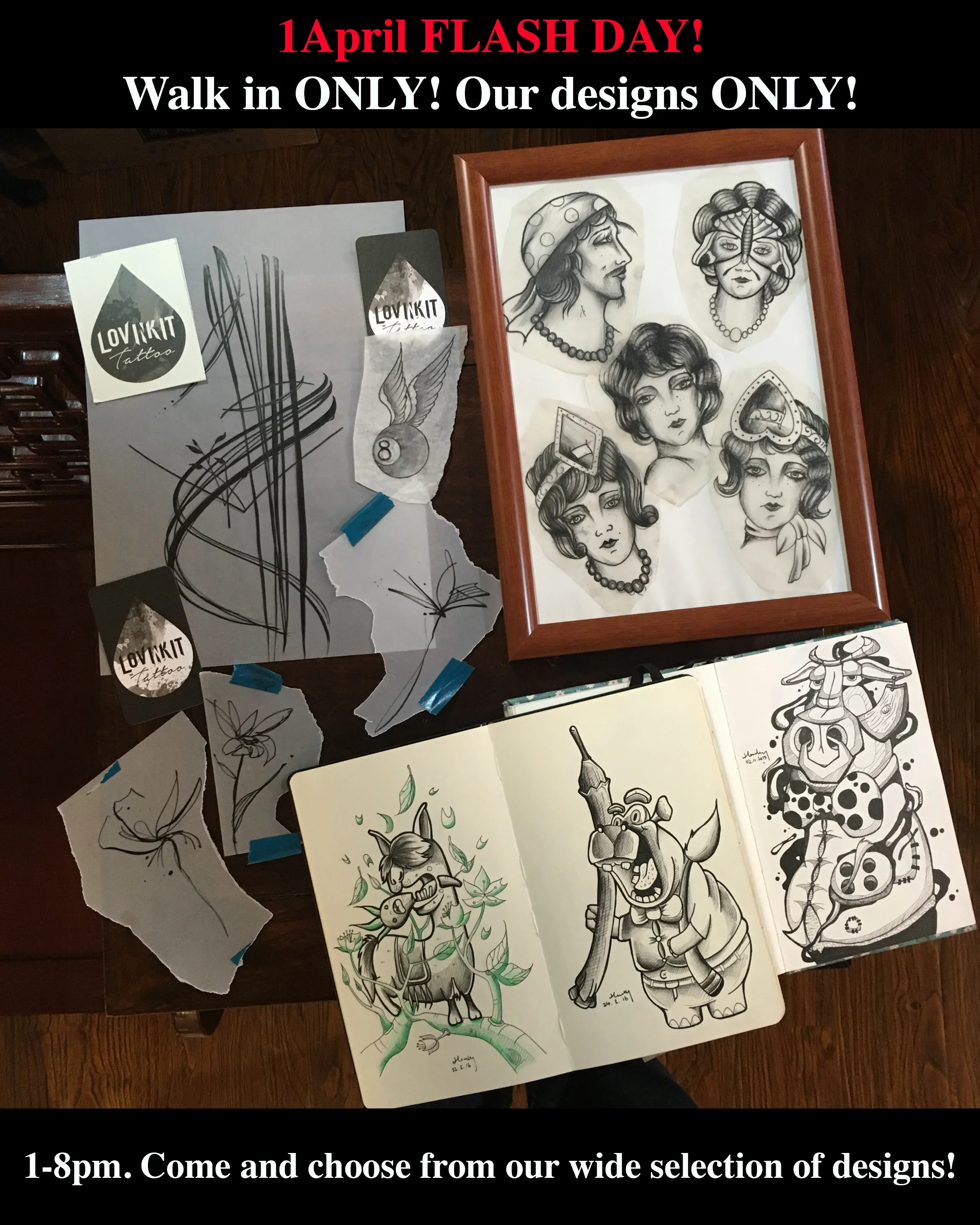 We are going to host our first ever Flash Day on 1/4 (1-8pm). Walk-ins ONLY! You can ONLY pick from our wide selection of designs ready for tattoo by our resident artists Jayers @jktattoohongkong , Alan @yclung , Lexi @lexi_tattoo , and also two guest artists and friends of ours Ro @ro886tattoo and Mark @kovalenko.mark . First come first serve! There will be a lot more to choose from in our albums on the day. It's your chance to skip the line to get a tattoo from us! If this works we may consider doing Flash Day every first Saturday of the month!